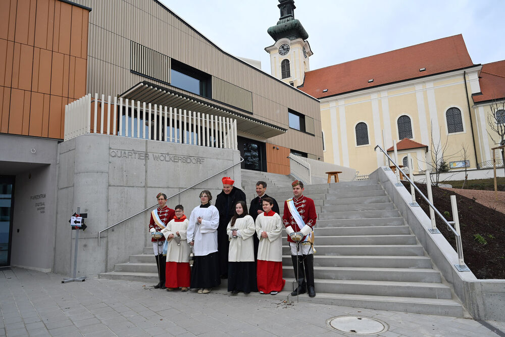 Am Sonntag, dem 12. Jänner 2025, feierte Kardinal Christoph Schönborn eine Festmesse und segnete anschließend das neue „Quartier Wolkersdorf“. Nach langen Verhandlungen entstand eine Kooperation zwischen der Pfarre und der Stadtgemeinde Wolkersdorf. Der Zu- und Umbau des Pfarrzentrums begann im Herbst 2023, und die neue Einrichtung wird nun von beiden genutzt. Wir waren mit der Kamera dabei.