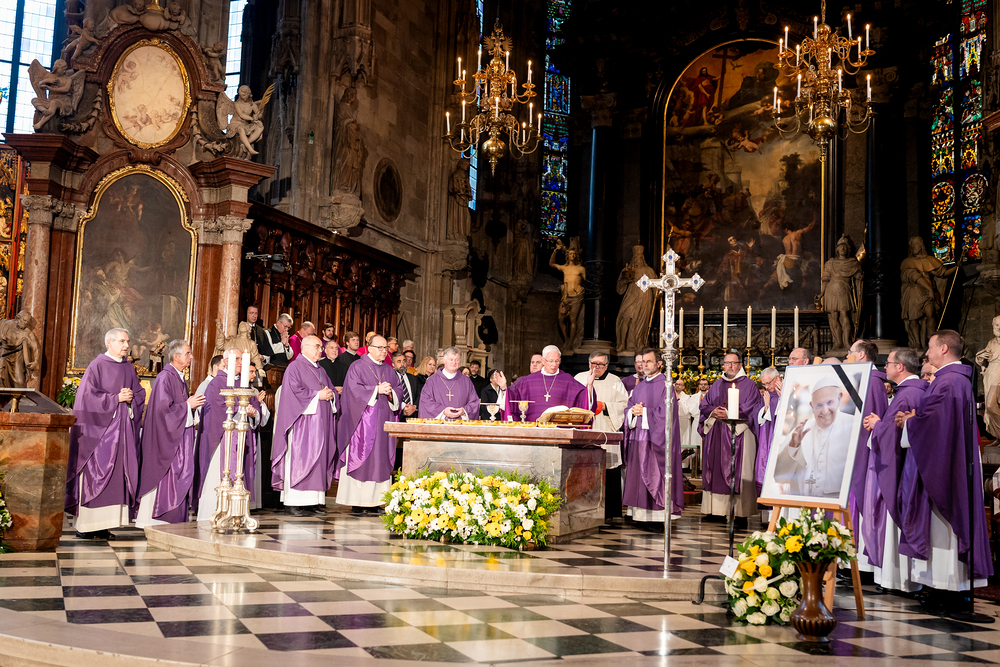 Mit einem "Requiem für seine Heiligkeit Papst Franziskus" nahm Österreich am Montagabend offiziell Abschied vom Papst. Dem Gottesdienst stand der Vorsitzende der Österreichischen Bischofskonferenz, Erzbischof Franz Lackner vor. Mit ihm konzelebrierten die heimischen Bischöfe. Die Politik war an erster Stelle von Bundespräsident Alexander Van der Bellen und Bundeskanzler Christian Stocker vertreten. Zahlreiche Gläubige gaben dem Papst im vollen Dom ebenfalls die letzte Ehre