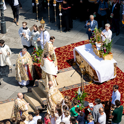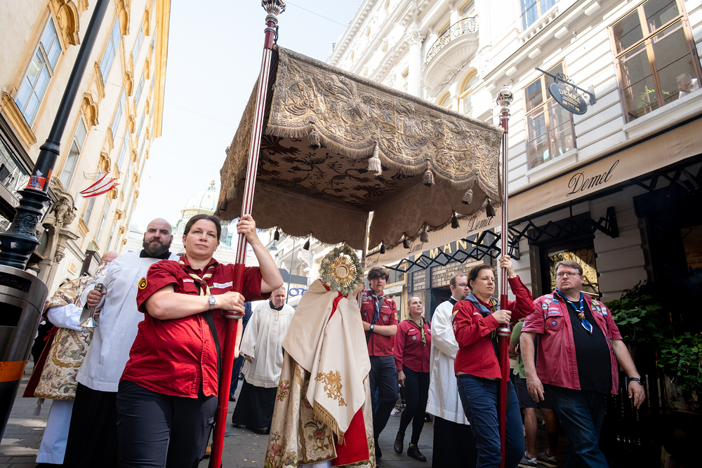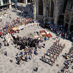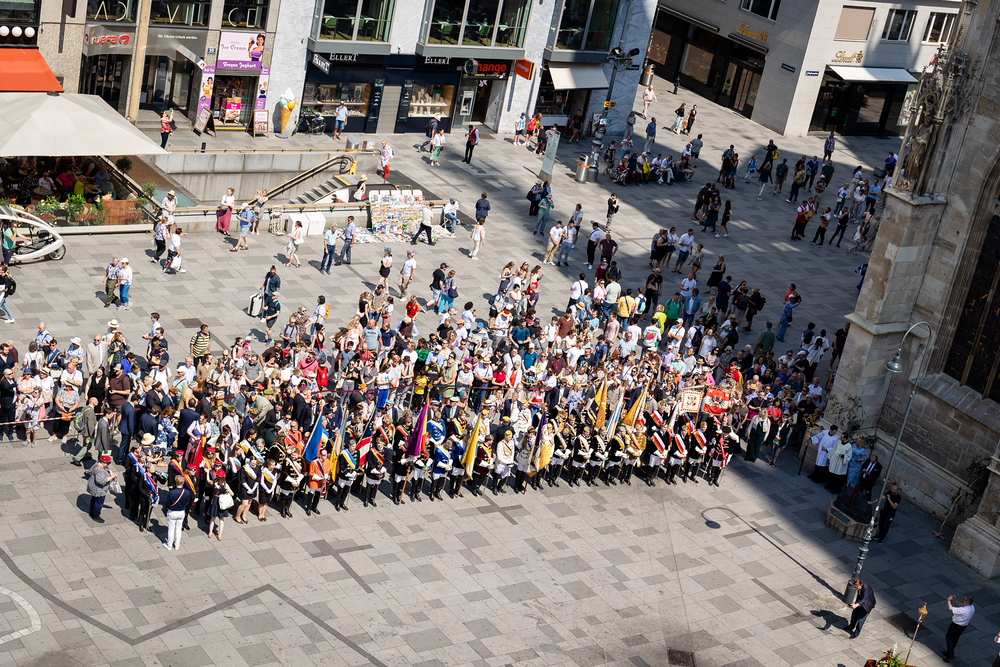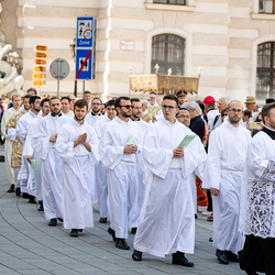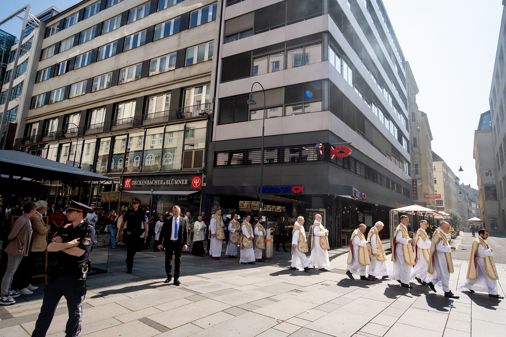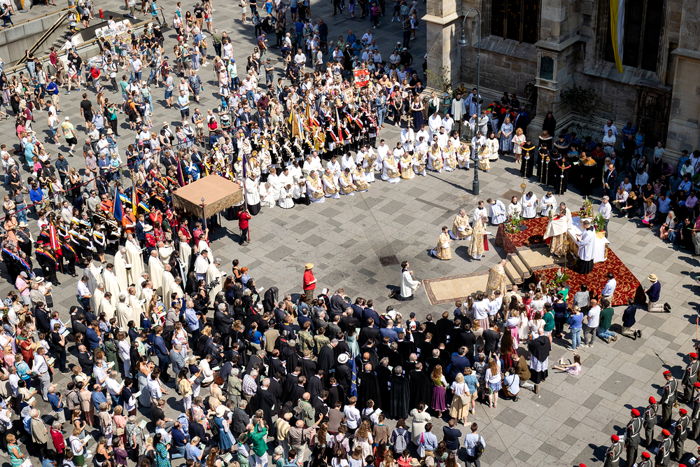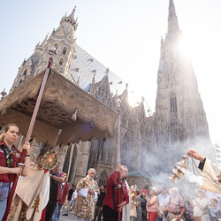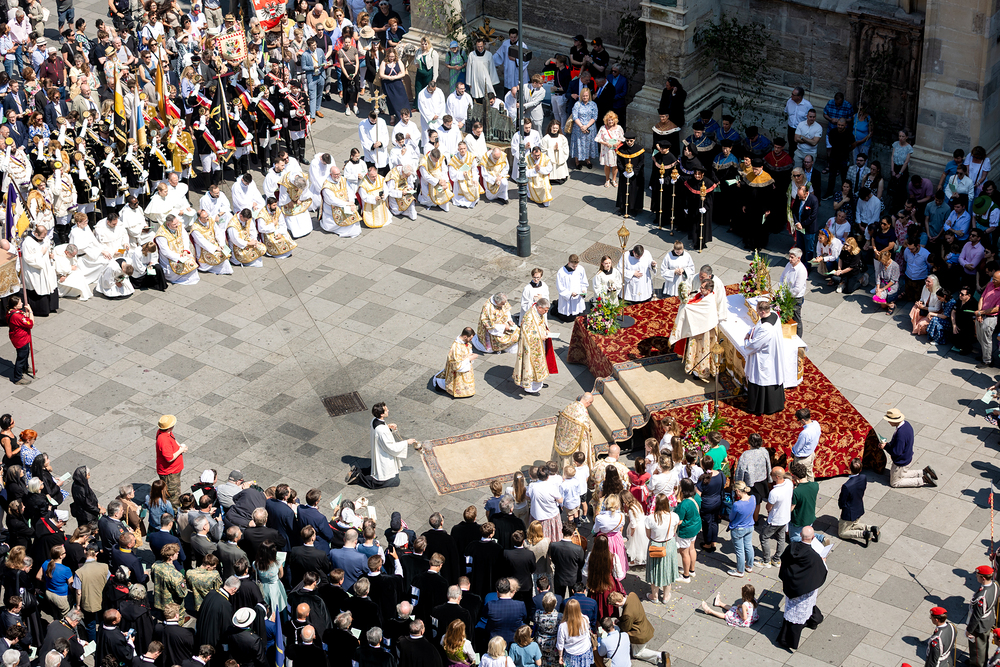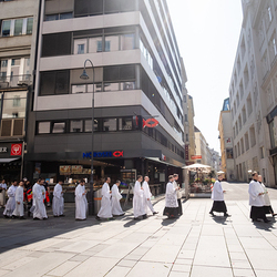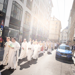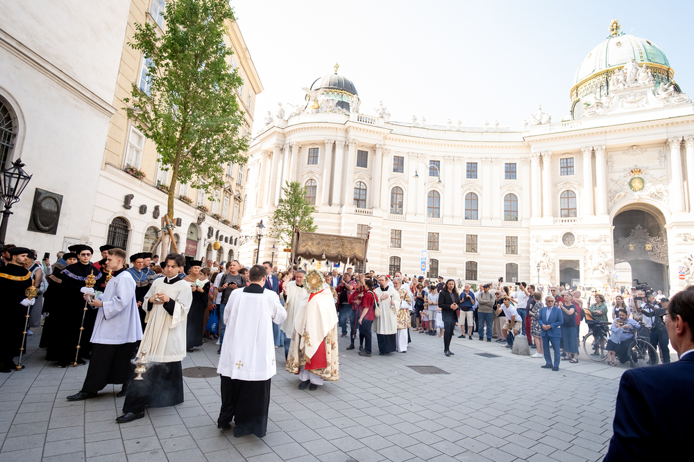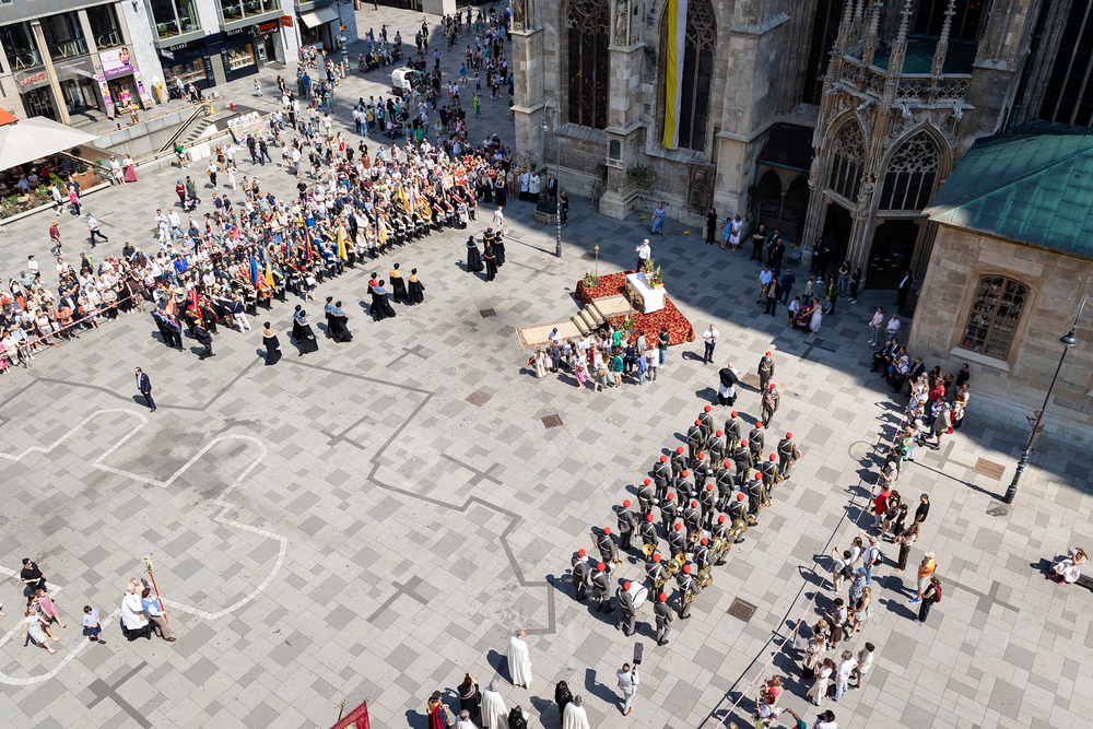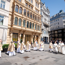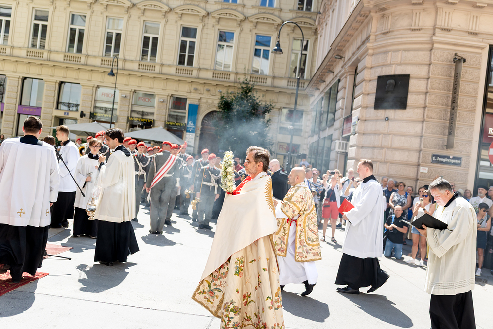 Josef Grünwidl betonte beim Stadtumzug anlässlich Fronleichnam die untrennbare Verbindung zwischen dem religiösen Feiertag und der christlichen Verantwortung, Gottes Schöpfung zu bewahren und eine „ökologische Umkehr“ angesichts der Klimakrise einzuleiten. Er dankte allen, die durch nachhaltiges Handeln und politischen Einsatz dazu beitragen, notwendige Maßnahmen zu ergreifen, um die dramatischen Folgen des Klimawandels abzuwenden. Die Fronleichnamsprozession, die vom Stephansdom ausging und Stationen am Michaelerplatz sowie am Graben bei der Peterskirche umfasste, zog erneut zahlreiche Gläubige und kirchliche Gruppierungen an. Auch politische Vertreter waren anwesend. Wir waren mit der Kamera dabei.