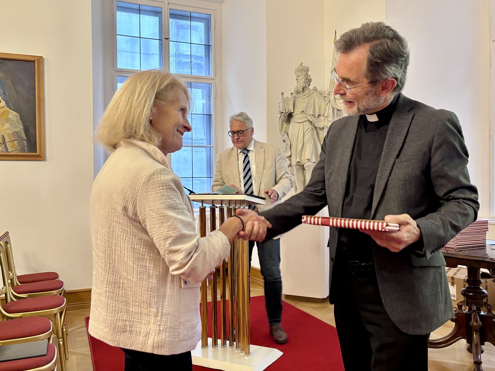 Time to say goodbye: Es ist eine gute Tradition in der Erzdiözese Wien, jedes Jahr die frisch gebackenen Pensionistinnen und Pensionisten zu verabschieden und ihr Engagement zu würdigen. Am Donnerstag, 25. September 2025, waren unsere ehemaligen Mitarbeiterinnen und Mitarbeiter zu einer Führung im Dom Museum Wien und einem anschließenden Festakt im Festsaal des Erzbischöflichen Palais eingeladen. Die Verabschiedung in den Ruhestand wurde von flotten Klängen junger Musikerinnen des „Trio Terzetto“ begleitet – darunter ein schwungvoller Tango von Astor Piazzolla.