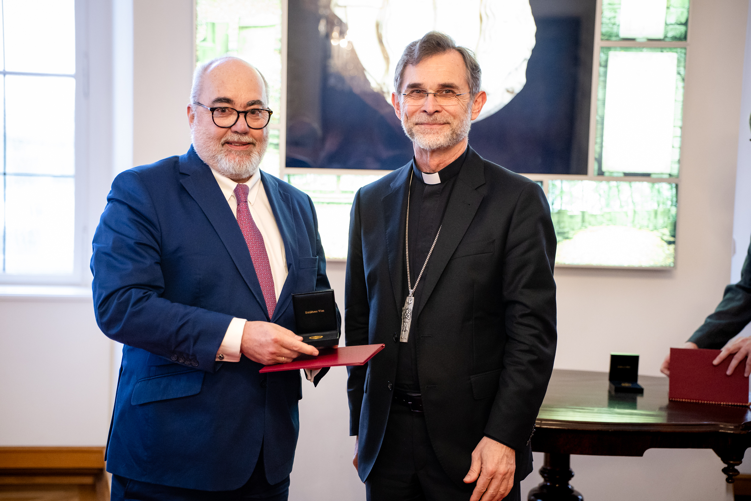 Höchste diözesane Auszeichnung durch Erzbischof Grünwidl an Rita Kupka-Baier, Erich Ehn und Josef Weiss verliehen - Kardinal Schönborn in Laudatio: Vertrauensvolle Zusammenarbeit wichtig für Kirche in bewegten Zeiten. Wir waren mit der Kamera dabei.