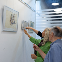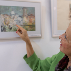 Vernissage der Ausstellung "Antal Jancsek, der Künstler mit dem poetischen Pinsel" im Raum der Stille am Wiener Hauptbahnhof.