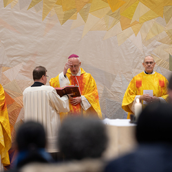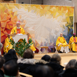 Heilige Messe der Weltkirche-Tagung Encuentro 2023 mit Gästen aus den Partnerdiözesen aus Ecuador, Kenia und den Philippinen durch Weihbischof Scharl.